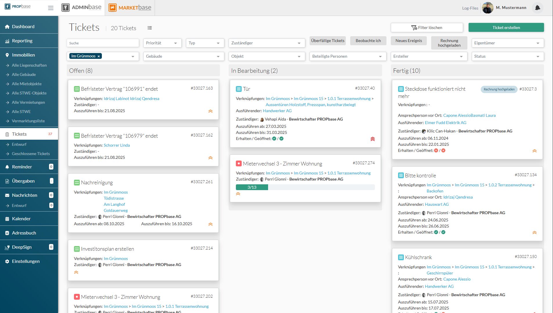 PROPbase ist eine Software für die professionelle Immobilienverwaltung. Sie vereint ERP, CRM, Dokumentenmanagement, Kommunikation, Ticketing, Aufgabenmanagement, Controlling mit digitalen geführten Prozessen in einem einzigen System.